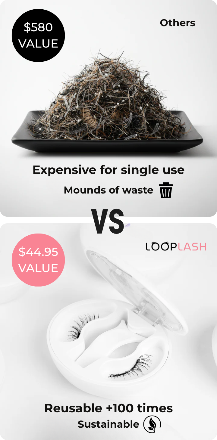 Traditional lashes can be messy, time-consuming, and damaging due to the glue and repeated pulling. Looplash magnetic lashes are different — they go on in seconds, require no adhesive, and can be reused many times. You save time, money, and keep your natural lashes healthy, all while getting the same full, beautiful look.